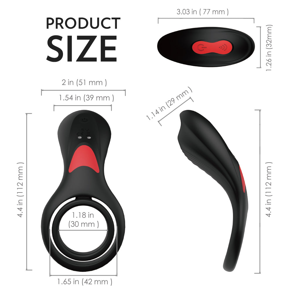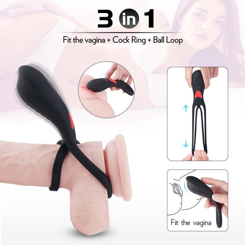 3 in 1 Rechargeable Ball Loop Vibrating Dual Cock Ring 9 Patterns