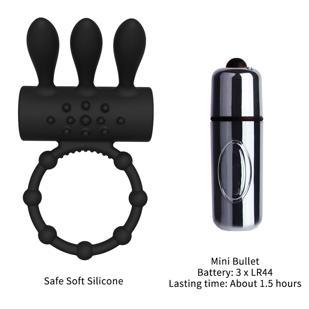 - HANDS FREE FUN - Easily slip on this snug yet stretchy ring and you're ready to play! The vibrating bullet requires 3 LR44 batteries for cord-free frolicking.