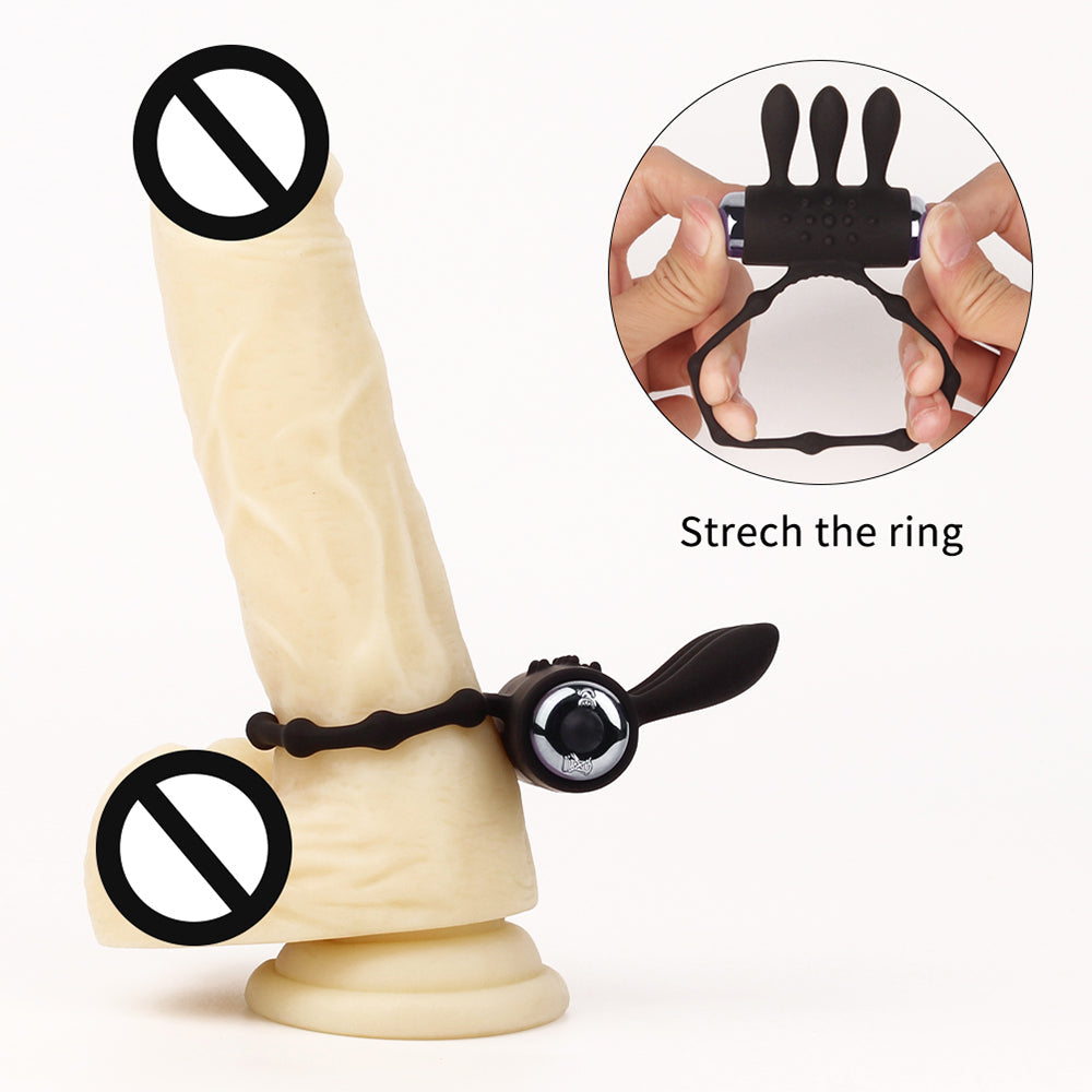 Penis Ring Vibrator With Rabbit Ears Mini Bullet Clitoris Stimulator